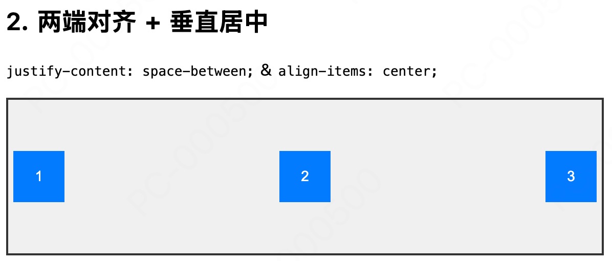 轴线间隔比轴线与边框的间隔大一倍 - space-evenly:所有间距完全相等
