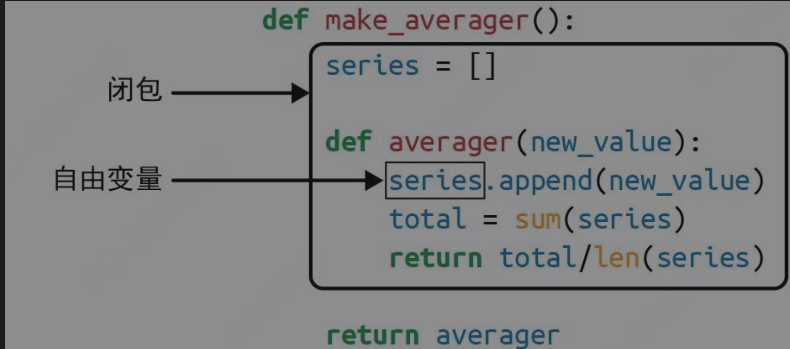 在 averager 函数中,series 是自由变量(free variable)。自由变量是一个术语,指未在局部作用域中绑定的变量。
